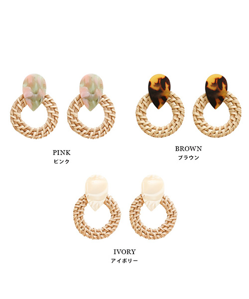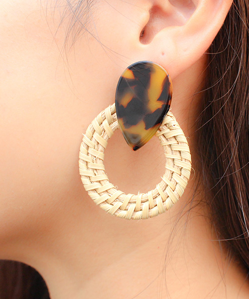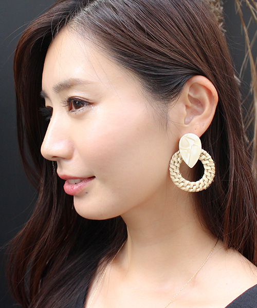 軽いストロー素材のピアスは存在感のあるデザインで夏のリゾートにもぴったり♪