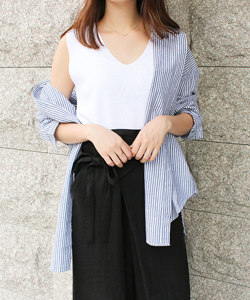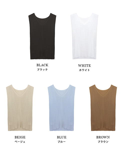 着回しの効くシンプルなノースリーブは幅広く着回せる定番アイテムです。