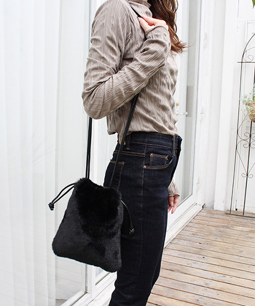 ふわふわで手触りの良いエコファーバッグは冬のコーディネートのアクセントに◎