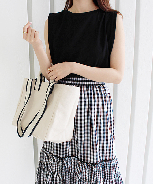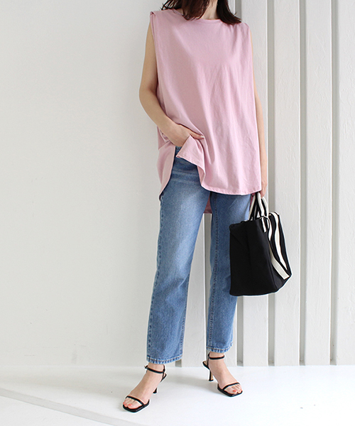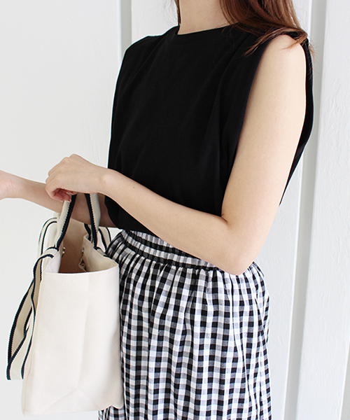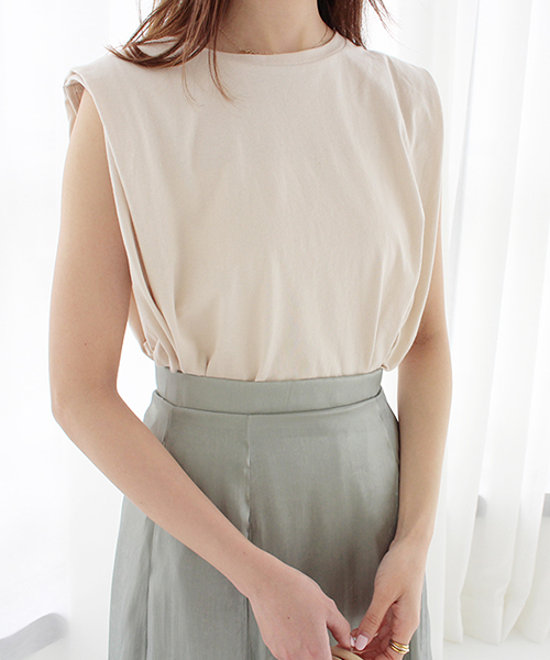 ショルダー部分に入ったタックがポイントのノースリーブが登場。