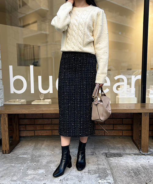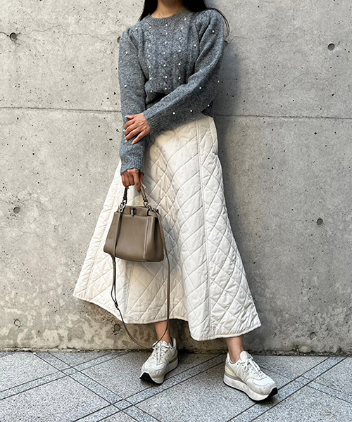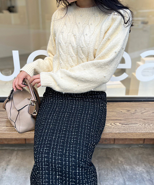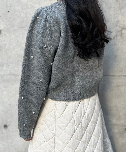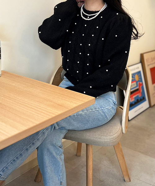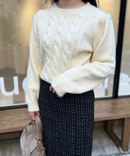 流行りのパールデザインがニットで登場♡シンプルなニットにパールが付いていることで